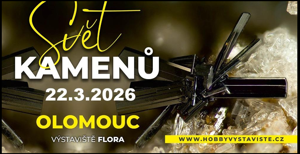 Svět kamenů. Prodejní výstava kamenů, minerálů a výrobků z nich. Kde: Výstaviště FLORA OLOMOUC / Wolkerova 37/17, 779 00 Olomouc, CZ/Česká republika. Kdy: Neděle 22. 03. 2026, 9-17 hod, Vstupné: Dospělí: 110,-Kč, důchodci nad 65 let, ZTP: 90,- Kč, děti do 150 cm, ZTP/P + doprovod: ZDARMA. Pořadatel: Ing. Dan Čagánek,