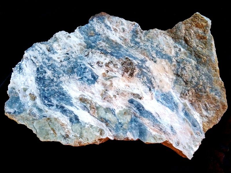 Nedvědický modrý kalcit s vesuvianem, grossularem, wollastonitem a pektolitem